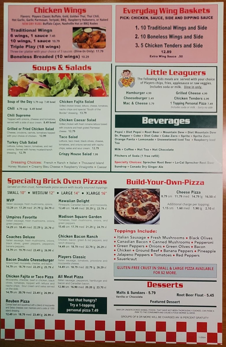 Welcome to Player's Pizza & Pub, a hidden gem nestled in Oshkosh, Wisconsin. Located at 556 W 5th Ave #5908, this cozy establishment is not just a restaurant; it's a delightful experience for food lovers and sports enthusiasts alike. With a welcoming atmosphere, friendly local patrons, and a reputation for exceptional service, Player's Pizza & Pub has carved a niche in the hearts of its visitors.